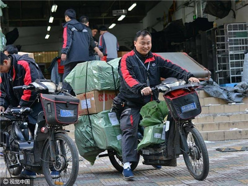 (作者:單新寧)雙十一期間,順豐快遞員在送貨,圖片來自視覺中國,未經(jīng)授權(quán),請勿使用