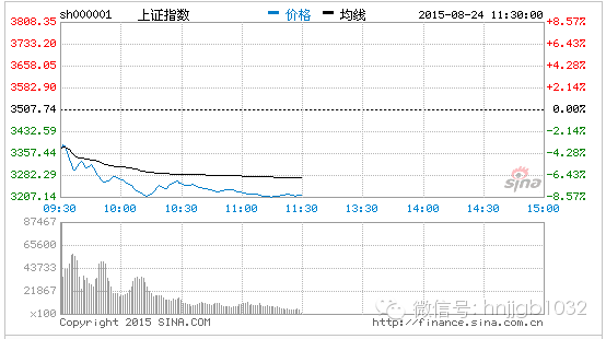截至午間收盤(pán),滬指跌8.45%,跌296.55點(diǎn),報(bào)3211.2點(diǎn),成交2434.36億元;創(chuàng)業(yè)板跌8.05%,跌188.43點(diǎn),報(bào)2153.53點(diǎn),成交193.74億元;深成指跌7.72%,跌918.62點(diǎn),報(bào)10983.42點(diǎn)。