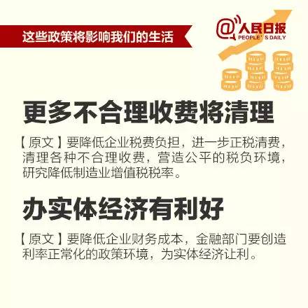 這次會(huì)議還用十個(gè)“更加注重”指明了新常態(tài)下應(yīng)該“怎么干”。更為關(guān)鍵的是,這個(gè)看似“高大上”的經(jīng)濟(jì)工作會(huì)議,其實(shí)離你我并不遙遠(yuǎn):社會(huì)保險(xiǎn)費(fèi)有望降低、非戶籍人口也能住公租房、鼓勵(lì)房企適當(dāng)降房?jī)r(jià)……中央敲定下的這些事,新的一年毫無疑問將給你我生活帶來深刻影響。