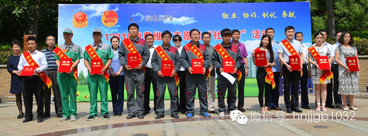 團省委城市青年工作部殷世洲副部長、河南經(jīng)濟廣播欣悅副總監(jiān)、省工商局相關(guān)處室領(lǐng)導(dǎo)為12位“志愿者”朋友們頒發(fā)了聘書。