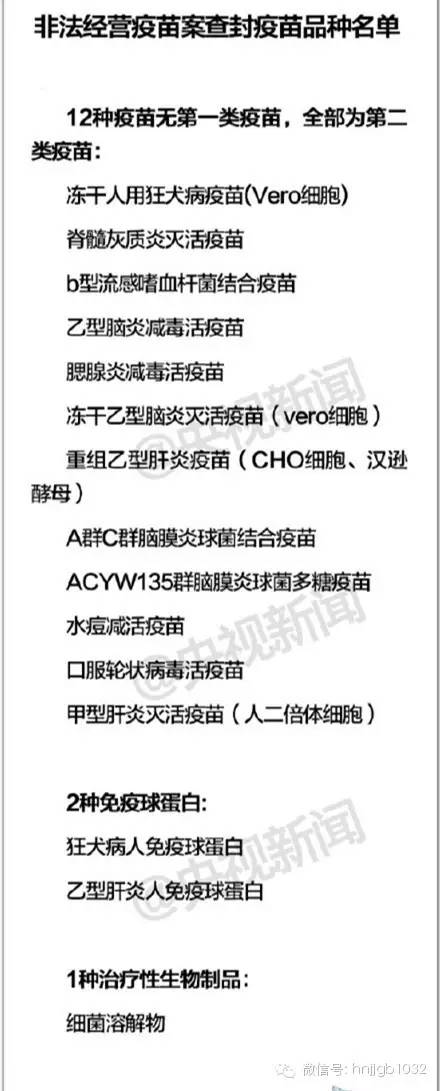 據(jù)@央視新聞 消息:3月20日,山東食品藥品監(jiān)管部門經(jīng)對警方提供的,關(guān)于龐某非法經(jīng)營疫苗案查封疫苗品種的清單進行核實,發(fā)現(xiàn)實有疫苗12種、免疫球蛋白2種、治療性生物制品1種。具體名單如下: