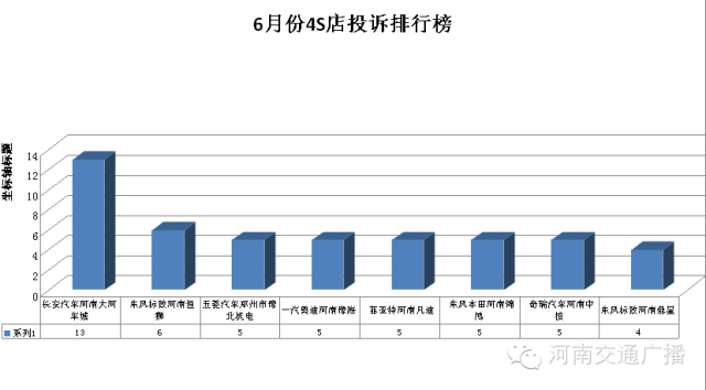應(yīng)廣大聽(tīng)眾要求,本次排行榜首次公布了汽車(chē)4S店投訴排行,分別是:長(zhǎng)安汽車(chē)河南大河車(chē)城、東風(fēng)標(biāo)致河南恒獅4S店、五菱汽車(chē)鄭州市豫北機(jī)電、一汽奧迪河南豫海4S店、菲亞特河南凡迪4S店、東風(fēng)本田河南錦鴻4S店、奇瑞汽車(chē)河南中值4S店、東風(fēng)標(biāo)致河南鼎星4S店。