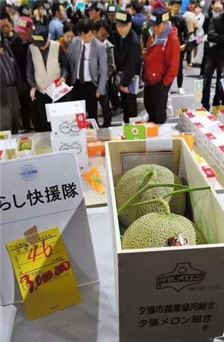 日本北海道夕張市特產(chǎn)“夕張蜜瓜”在今年5月26日的一家批發(fā)市場(chǎng)舉行了首次競拍。兩個(gè)裝的夕張蜜瓜禮盒被以300萬日元(約合人民幣17.9萬元)的高價(jià)拍下。