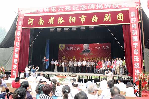 5月9日,由河南省藝術(shù)研究院、省戲劇家協(xié)會、省戲曲表演學(xué)會、洛陽市文廣新局、洛陽市戲劇家協(xié)會、洛陽市曲劇院主辦的,曲劇宗師?一代名伶朱六來先生紀念碑揭碑儀式在其故里洛陽市關(guān)林鎮(zhèn)大東村舉行。來自省內(nèi)的著名戲劇評論家、劇作家馬紫晨,河南省藝術(shù)研究院院長方可杰,戲劇評論家譚靜波,曲劇老藝術(shù)家劉衛(wèi)生、馬騏、牛長欣、高桂枝、郭鳳娥等,以及各地市兄弟院團代表參加了本次揭碑儀式。同時,著名曲劇表演藝術(shù)家“曲劇泰斗”馬騏,有南牛北馬之稱的南牛著名曲劇表演藝術(shù)家牛長欣,以及各兄弟院團的著名演員獻上了精彩的專場演出。
