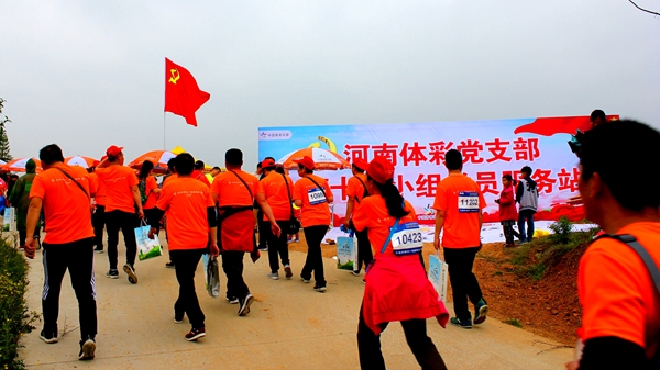 參賽者路過“河南體彩黨支部第十四小組黨員服務(wù)站”