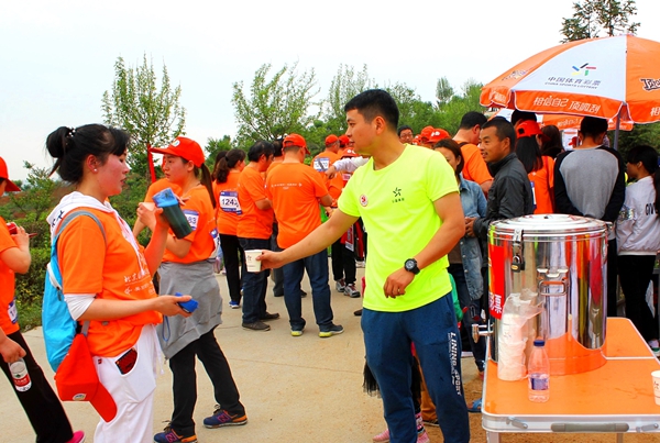 分中心黨員同志為參賽者提供免費(fèi)飲水服務(wù)