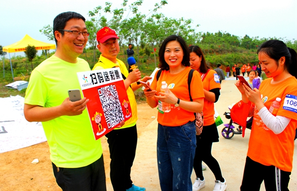 河南體彩管理中心信陽(yáng)分中心在賽道的4公里處設(shè)置了“河南體彩黨支部第十四小組黨員服務(wù)站”,布置了休息區(qū)域,免費(fèi)提供溫開水為大家取用。還以概率游戲的大樂透玩法為主要宣傳內(nèi)容,張貼了宣傳品,現(xiàn)場(chǎng)為大家介紹大樂透的玩法知識(shí)。崎嶇的山路上,沿路擺放了體彩頂呱刮的銷售區(qū),由網(wǎng)點(diǎn)業(yè)主自發(fā)開展“掃碼加好友”送即開彩票的線上拉新活動(dòng),另外,信陽(yáng)分中心還為群眾登山愛好者免費(fèi)提供了簡(jiǎn)易的登山杖,確保大家的登山安全。