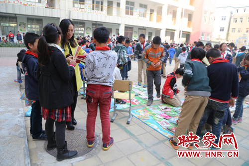 映象網(wǎng)教育頻道訊(記者 李照華 通訊員 張俊杰)為培養(yǎng)孩子們節(jié)約資源、愛護環(huán)境的意識和良好的行為習慣,讓學生們體驗“公平買賣”和“勞動快樂”,結識更多的朋友,本著“你的多余,我的需要”理念,通過舊書循環(huán)利用,以“書換書”和“錢買書”的方式,推廣循環(huán)經(jīng)濟、生態(tài)環(huán)保的思想。經(jīng)開區(qū)外國語小學經(jīng)過前期精心的準備,于2015年11月4日下午,順利組織開展了主題為“悅分享 越快樂”的圖書“跳蚤市場”活動,讓學生把家中閑置的圖書在跳蚤市場活動中與同學等價交換或錢物交換。