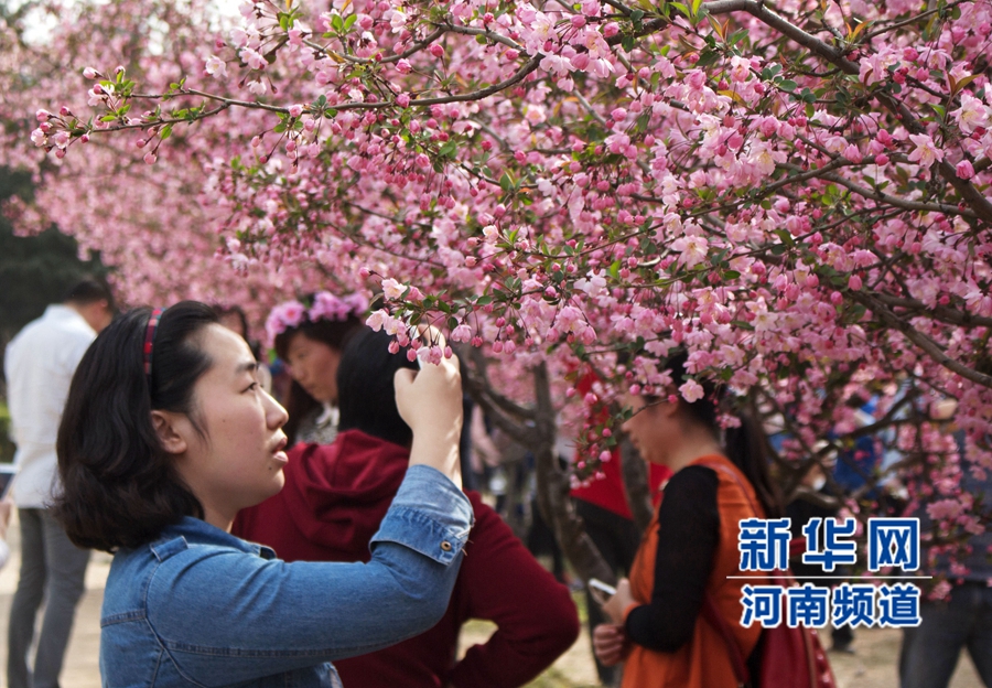 新鄭大滿(mǎn)園櫻花醉游人 市民學(xué)生流連忘返
