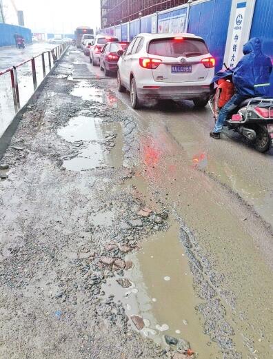 中鐵大橋局該項(xiàng)目部負(fù)責(zé)人楊先生稱(chēng),他們每天派出4人對(duì)保通路維護(hù),一旦發(fā)現(xiàn)破損,將用泥沙、石子等暫時(shí)填充,有些大坑暫時(shí)放上鋼板,以保證道路暢通。“但這條路車(chē)流量太大,沒(méi)幾天,大坑就又出現(xiàn)了?!?/p>