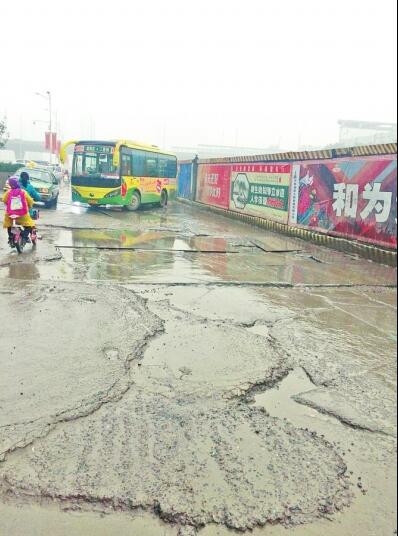 紫荊山路與隴海路交叉口的保通路出現(xiàn)大面積破損
