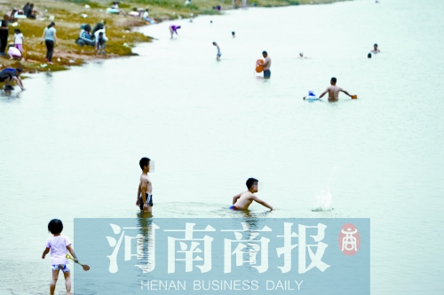 “我已經(jīng)連續(xù)來兩天了。”一男子說,他每次都會帶著孩子一塊來游泳。河南商報(bào)記者發(fā)現(xiàn),來此游泳的人群中,兒童約占一半,不少大人都帶著孩子來。
