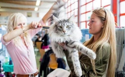 據(jù)外媒報(bào)道,日前,瑞士沃勒勞(Wollerau)舉行國(guó)際貓展。展覽上,各路“喵星人”紛紛亮相比美。圖為一只名為“布拉德利”(Bradley)的貓咪梳妝打扮,準(zhǔn)備參賽。