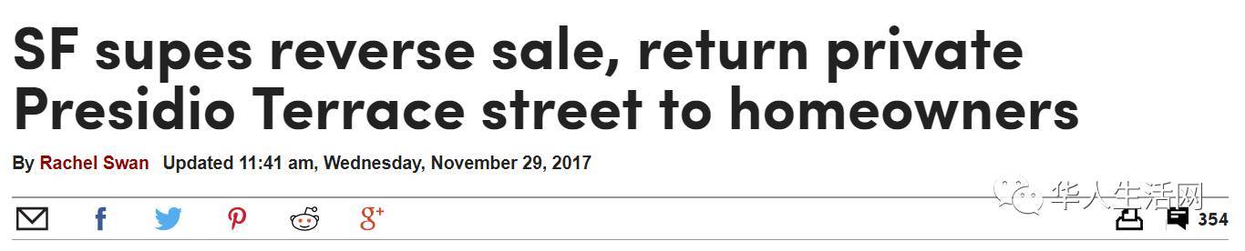 一對住在硅谷的年輕華裔夫婦以9萬元購得舊金山高尚住宅區(qū)太平洋崗的一條小街道Presidio Terrace,35棟超級豪宅業(yè)主試圖拿回街道所有權(quán)。舊金山市參事會(huì)昨日就事件舉行聽證會(huì),市參事會(huì)最后以7對4通過,取消Presidio Terrace街道的買賣。