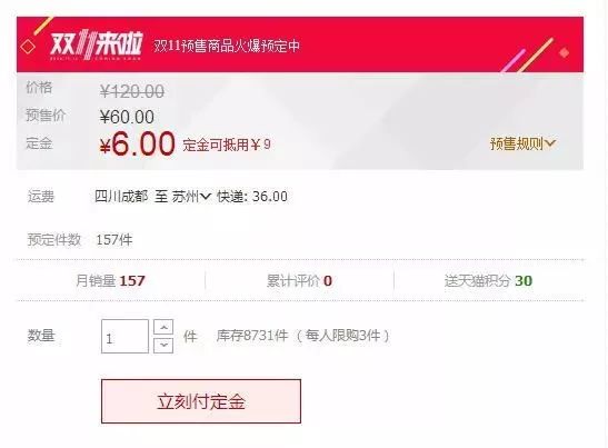 所謂預(yù)售,即商家使用支付定金(訂金)的方式,讓消費(fèi)者提前購(gòu)買(mǎi),“雙十一”當(dāng)天支付尾款,“雙十一”后發(fā)貨。
