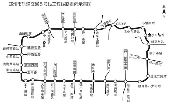 鄭州地鐵5號線是鄭州地鐵線網中唯一一條環(huán)形線路,與其他地鐵線路全部有換乘站。