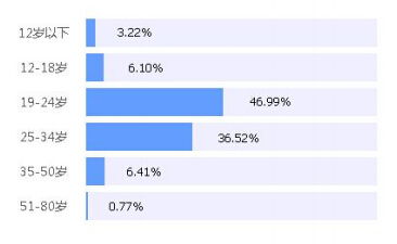 參與微博討論的網友中,年齡集中分布在19-34歲,共占比 83.51%,其中19-24歲占比最高,為46.99%。19-24歲為90后群體,這個群體自信張揚、充滿激情、向往自由,“世界那么大,我想去看 看”這句話在年輕群體中倍受追捧。