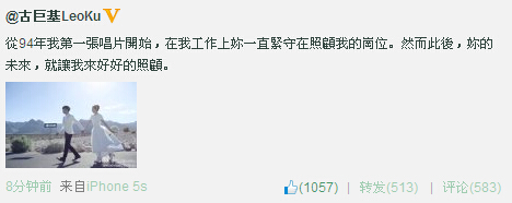 人民網(wǎng)北京7月15日電 古巨基和助理女友陳英雪的20年“地下情”終于傳出喜訊,今日(7月15日),古巨基發(fā)布微博,公布了自己與助理女友的結(jié)婚照,并感嘆道:“從94年我第一張唱片開(kāi)始,在我工作上你一直緊守在照顧我的崗位。然而此后,你的未來(lái),就讓我來(lái)好好的照顧。”