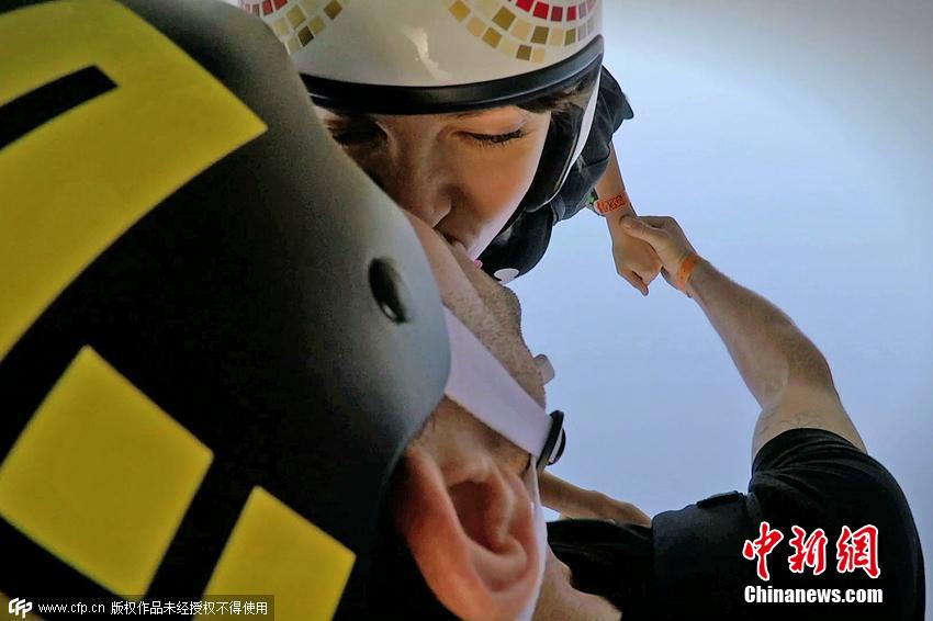 羅伯塔·曼奇諾和諾亞·巴恩森都是知名跳傘運動員,他們跳傘時在高空中的親吻簡直可以稱為“世界最瘋狂之吻”。 圖片來源:CFP視覺中國