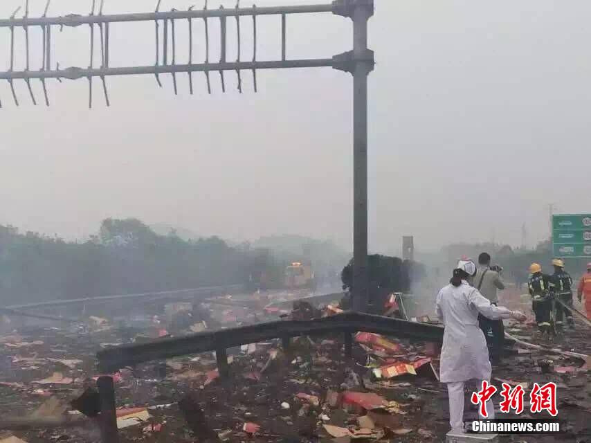據(jù)江西省高速部門10月30日消息,當(dāng)日15:20左右,距離滬昆高速公路分宜互通2公里處發(fā)生油罐車爆炸事件,爆炸導(dǎo)致分宜收費站內(nèi)辦公樓和宿舍大面積玻璃碎裂?,F(xiàn)場圖片顯示,有大量煙花爆竹燃燒痕跡。目前,江西省高速、交警、醫(yī)護(hù)、消防等相關(guān)部門已在現(xiàn)場。事故情況正在進(jìn)一步核實中,傷亡情況未知。(李琴 攝)