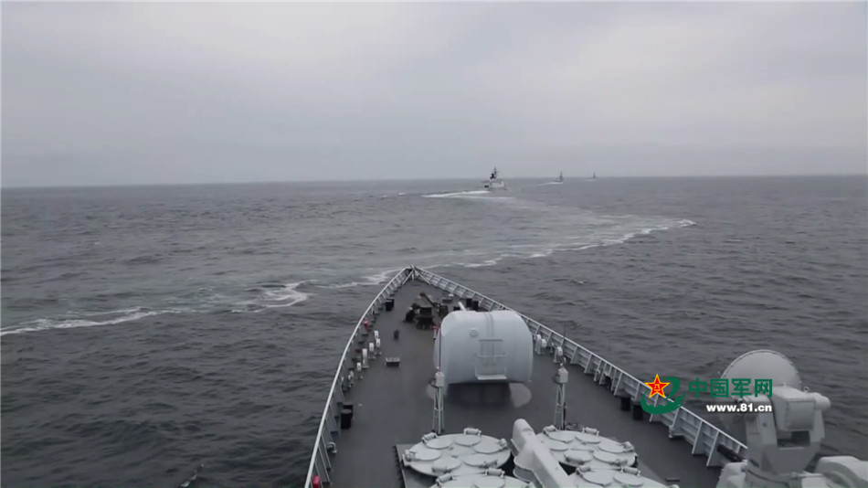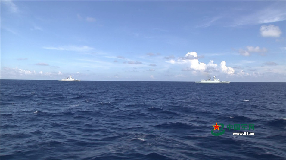 紅方艦艇編隊指揮艦合肥艦上,急促的警報聲驟然響起,“報告,發(fā)現(xiàn)空中目標(biāo)向我飛近!”合肥艦駕駛室,某驅(qū)逐艦支隊參謀長鐘博文沉著冷靜指揮,紅方編隊迅速采取反干擾措施,雷達、通信等戰(zhàn)位重新恢復(fù)工作,并在空中預(yù)警兵力的協(xié)同下,合肥艦及時偵獲藍軍行動。圖為艦艇編隊。