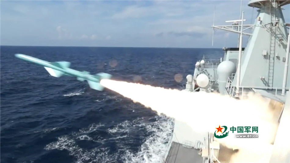 藍方兵力被逐一削弱。隨即,紅方發(fā)起新一輪突擊,一張無形的火力打擊網(wǎng)又悄悄向藍方水面艦艇覆蓋?!按驌裟繕?biāo)XXX!”在空中預(yù)警兵力配合下,紅方精確鎖定藍方水面艦艇目標(biāo)。一場立體圍殲戰(zhàn)隨即打響:水下,潛艇突擊群悄然出擊,導(dǎo)彈刺破水面;水面,岳陽艦突擊群齊頭并進,導(dǎo)彈呼嘯而出;空中,多架戰(zhàn)機緊急升空,運用強大的火力奪取制空權(quán)……