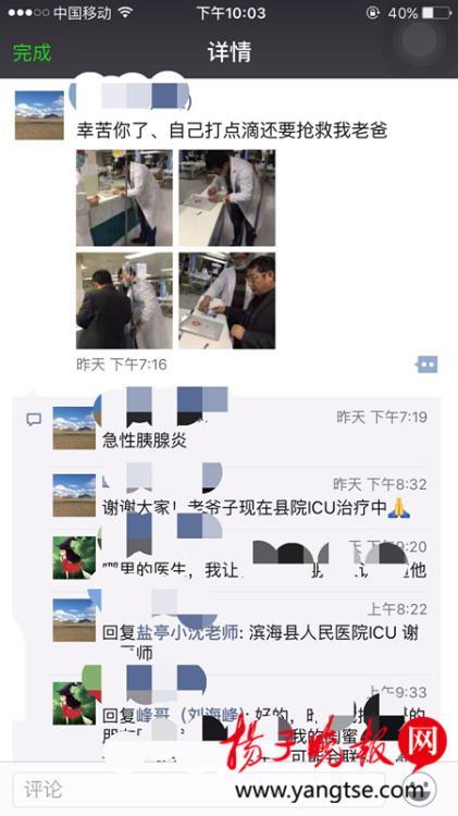 記者聯(lián)系上微信好友劉海峰,他告訴記者,昨天晚7點左右,他老爸重因病去濱??h人民醫(yī)院搶救,進入重癥病房后,跟著一名護士去喊醫(yī)生,看到一名男醫(yī)生坐在辦公室的看病歷?!拔液唵握f了一下爸爸的病情,他立刻推著掛著點滴的架子跑了出來?!眻D片來源:揚子晚報網(wǎng)