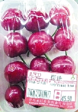 在批發(fā)市場(chǎng)上就能賣(mài)出120元/斤的高價(jià),進(jìn)了超市就更是“貴族身份”。在青島的香港中路一超市,用保鮮膜包裝好的櫻珠,售價(jià)高達(dá)158元/斤。隨手拿起一盒,記者看到11顆櫻珠竟然賣(mài)到了47.4元 ,平均下來(lái)一顆4.3元。