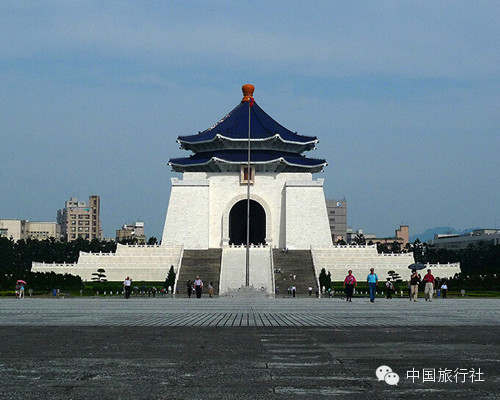 中正紀(jì)念堂幅員廣闊,占地一萬五千六百平方公尺,由中山南路、愛國(guó)東路和信義交圍而成,以中國(guó)庭園造景為主要設(shè)計(jì)形制,加廊窗棱古典而幽雅,整體建筑則以藍(lán)、白二色搭配相和,有著自由、平等的寓意。