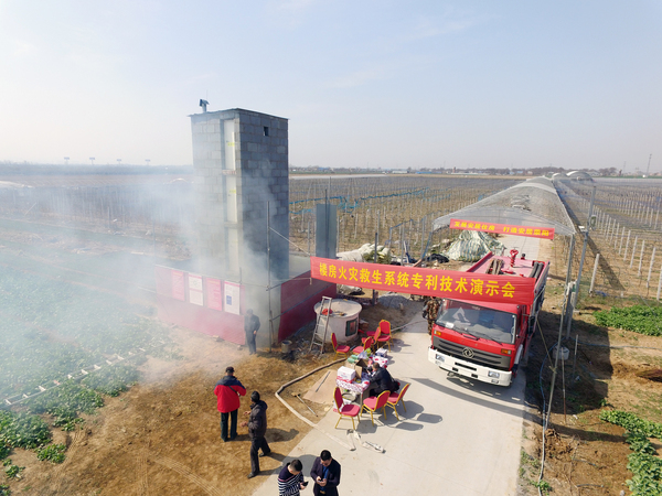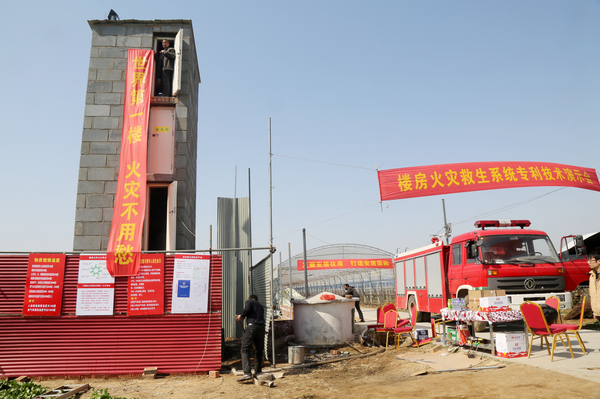 原來,這是在進(jìn)行樓房火災(zāi)救生系統(tǒng)的現(xiàn)場(chǎng)演示。
